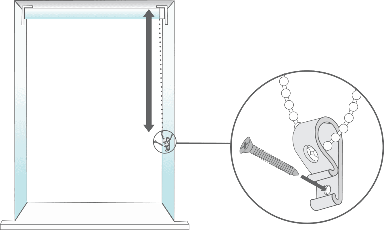 The cord retaining device must be installed at the maximum distance possible from the control mechanism to prevent looped cords from becoming slack.