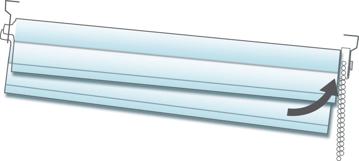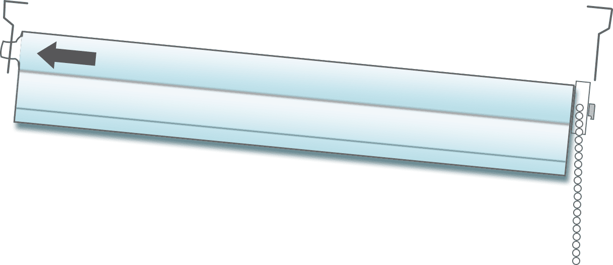 Lift the control end of the blind and slot the rectangular ‘lugs’ into the corresponding slots on the bracket.