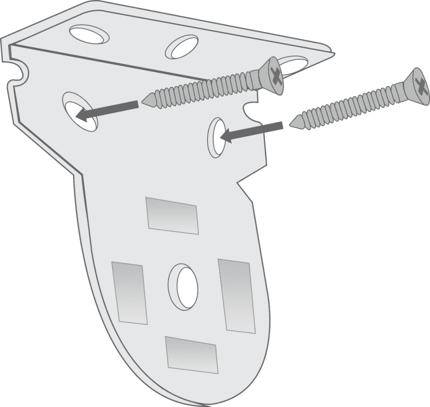 Mark the hole positions and drill as required. Use the screws provided to attach the safety cleat to the wall.