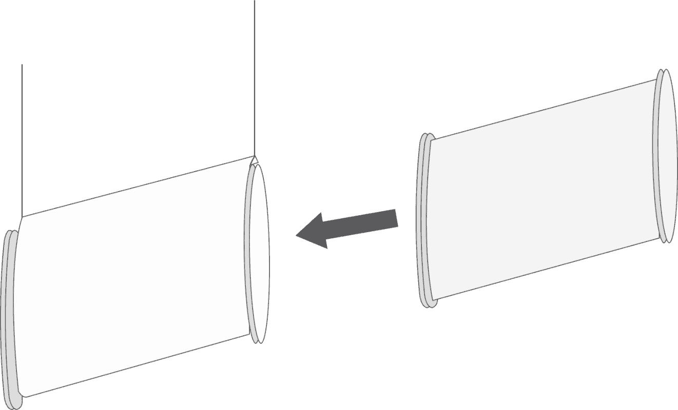 Attach the winged clips to the rear of the pelmet and hook the serrated pelmet clips onto the headrail (if installing the blind within a recess, this should be done before step 2) so that both the serrated clips and winged clips are in corresponding postions on the headrail and pelmet. Then align the two clips with each other and apply gentle pressure to the front of the pelmet, directly over the clips to click them together.